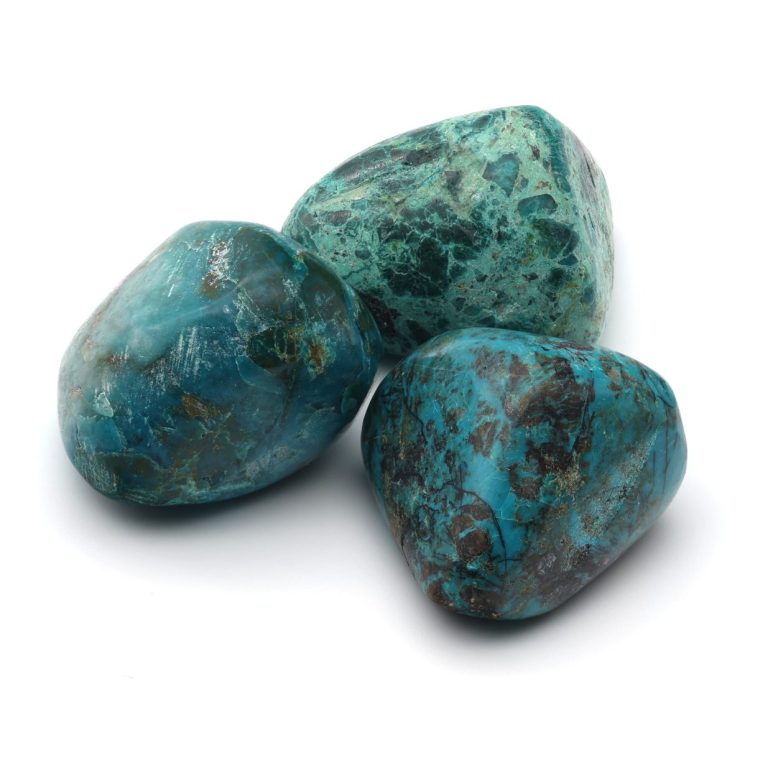 Durch seine intensive Farbe, die markante Struktur und die seltene Herkunft gilt der Shattuckit als besondere Trommelstein-Rarität – ein faszinierender Stein aus den Tiefen des Kongo.